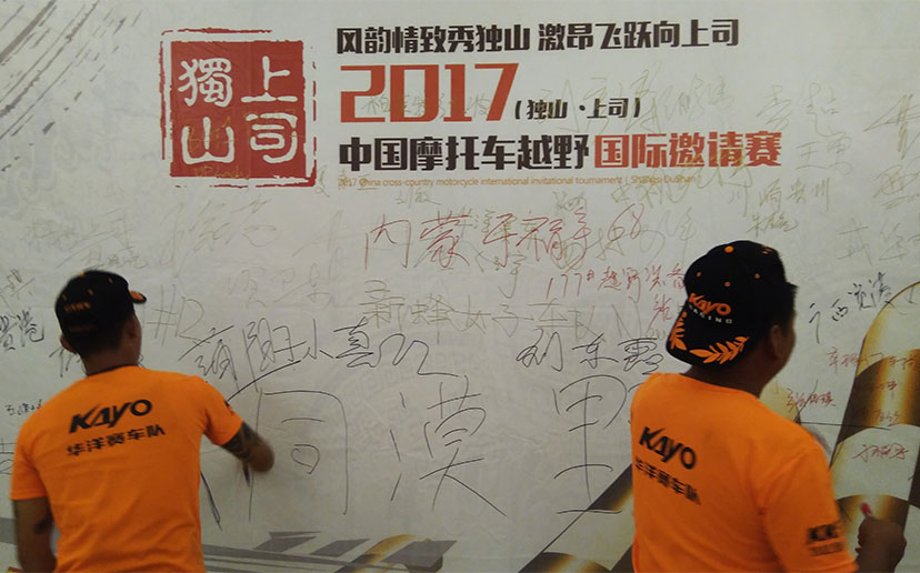 車手們抵達(dá)獨(dú)山&middot;上司,紛紛在簽名板上留下自己的名字▼